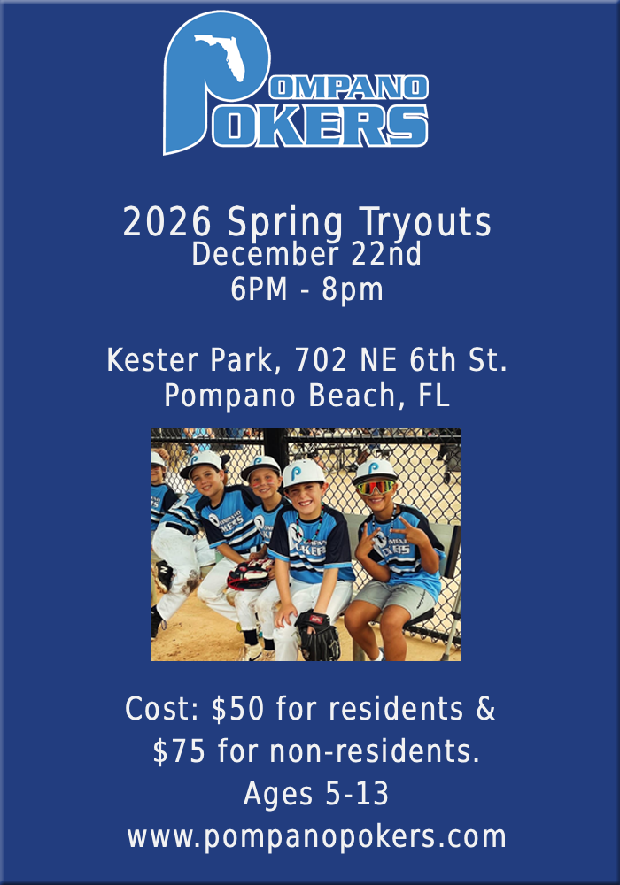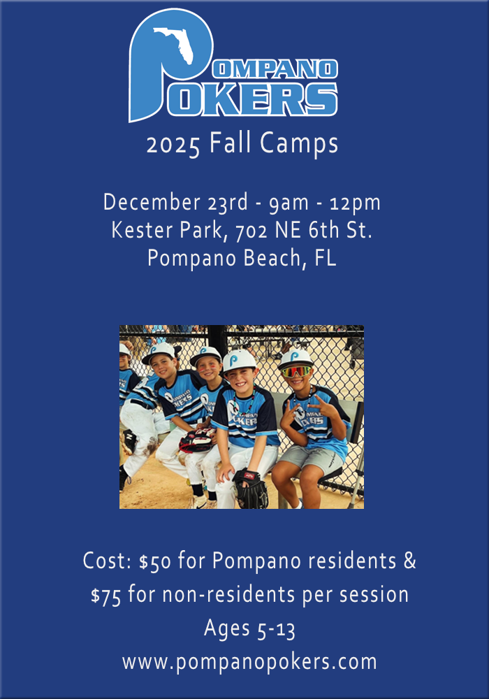 Pompano Pokers Baseball is dedicated to helping young baseball players reach their maximum potential in the game, as well as grow into strong, productive individuals.